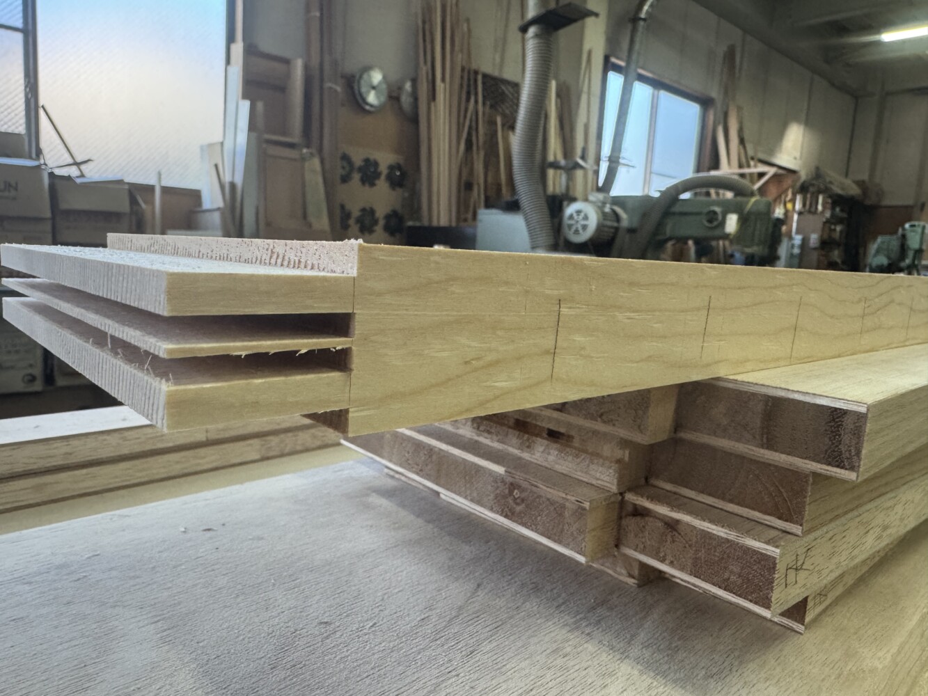 さて2月初旬から新築の現場の建具たちを順次製作を進めています。月末の納めに向けてフラッシュ戸を製作。残りの硝子戸も寸法を確定して頂き製作に入りました!